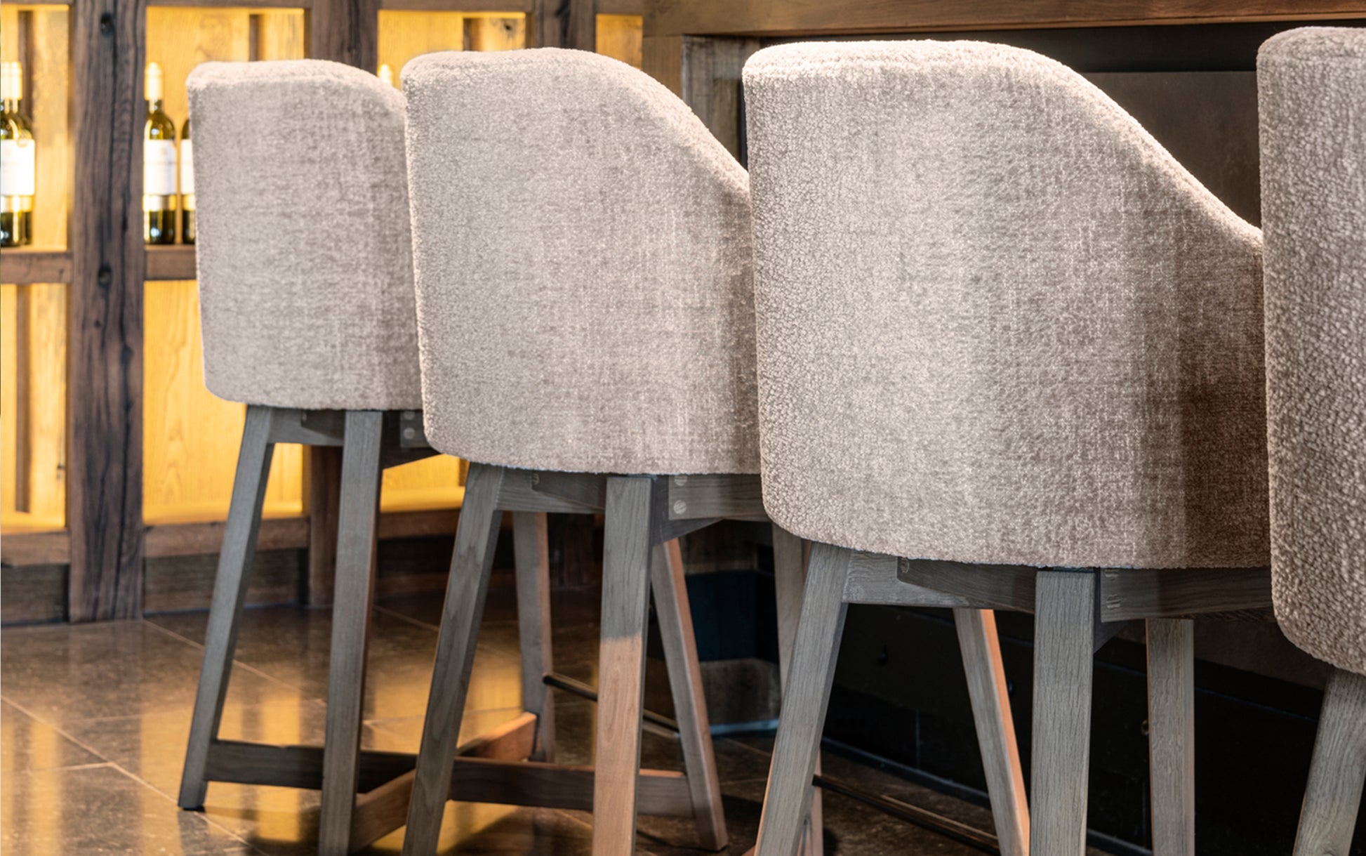 Diese Barhocker sind in einer großen Auswahl an Stoffen und Farben erhältlich, sodass Sie endlos variieren und die perfekte Ergänzung zu Ihrer Einrichtung finden können. Das Eichenholzgestell ist in verschiedenen Farben erhältlich, sodass Sie den Barhocker an Ihren persönlichen Stil anpassen können.