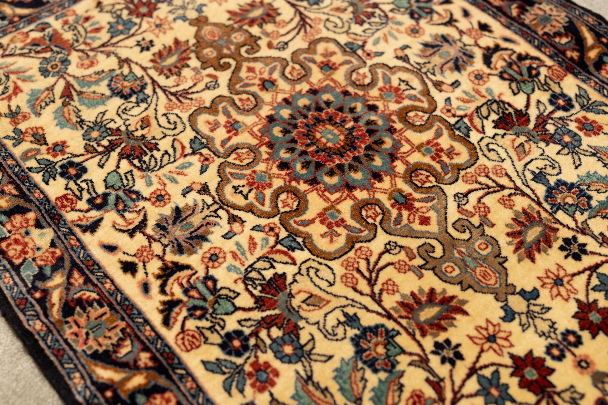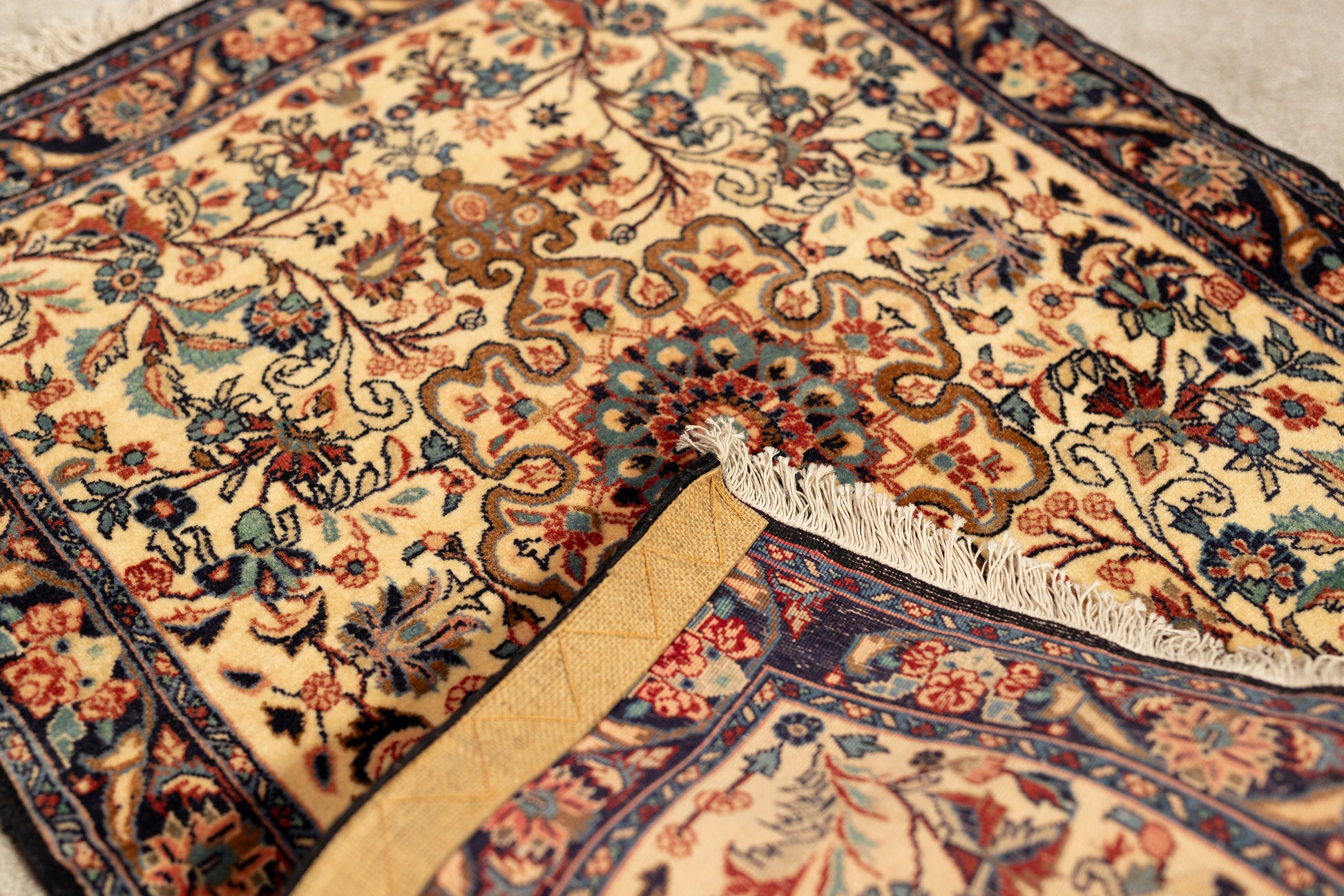 Unsere Teppiche werden mit Sorgfalt und handwerklichem Können von Hand gefertigt. Diese traditionelle Herstellungsmethode verleiht jedem Teppich seinen ganz eigenen Charakter und seine ganz eigenen Nuancen. Diese individuellen Merkmale sorgen dafür, dass jedes Stück ein authentisches Kunstwerk ist, das es von der Massenproduktion abhebt und Ihrem Raum eine persönliche Note verleiht.