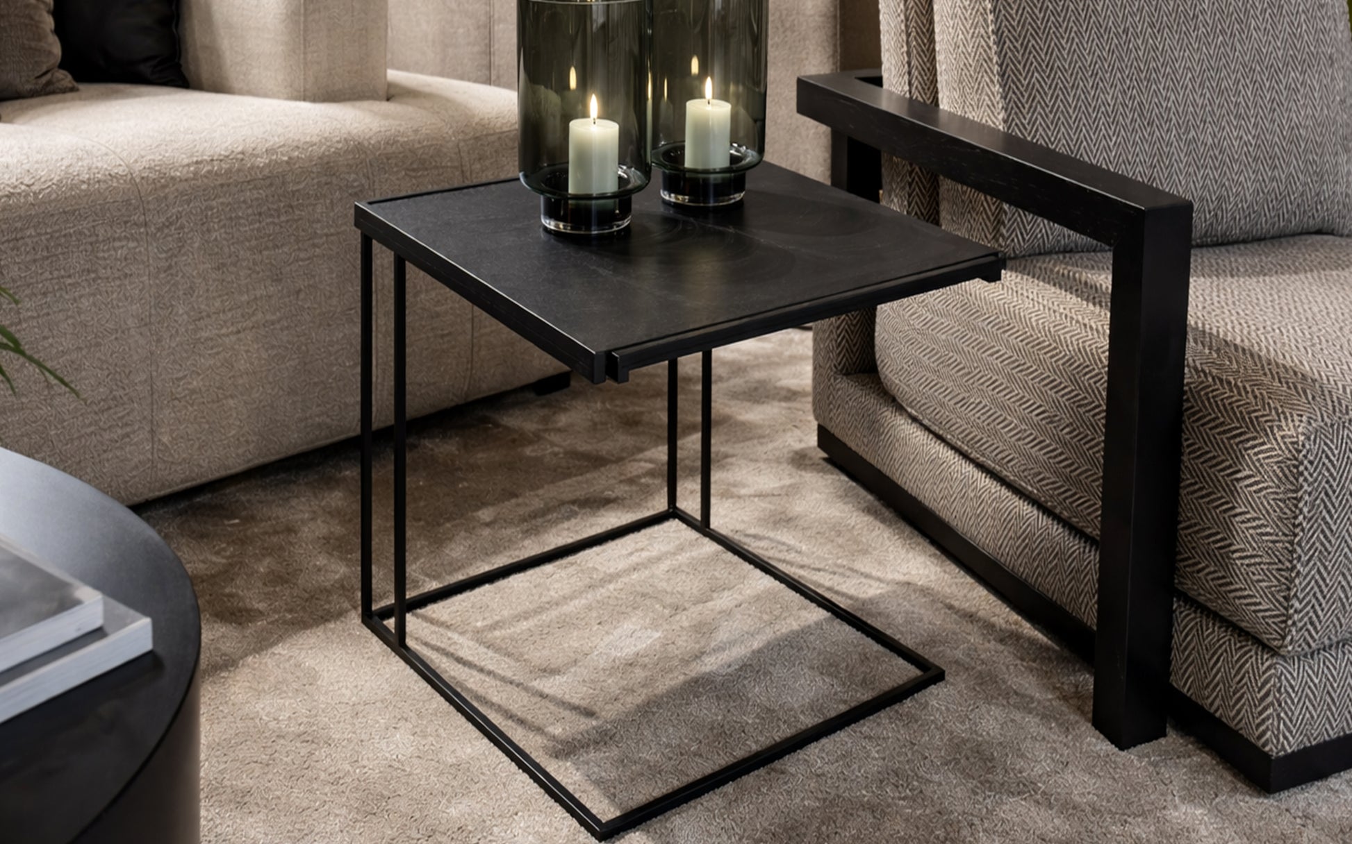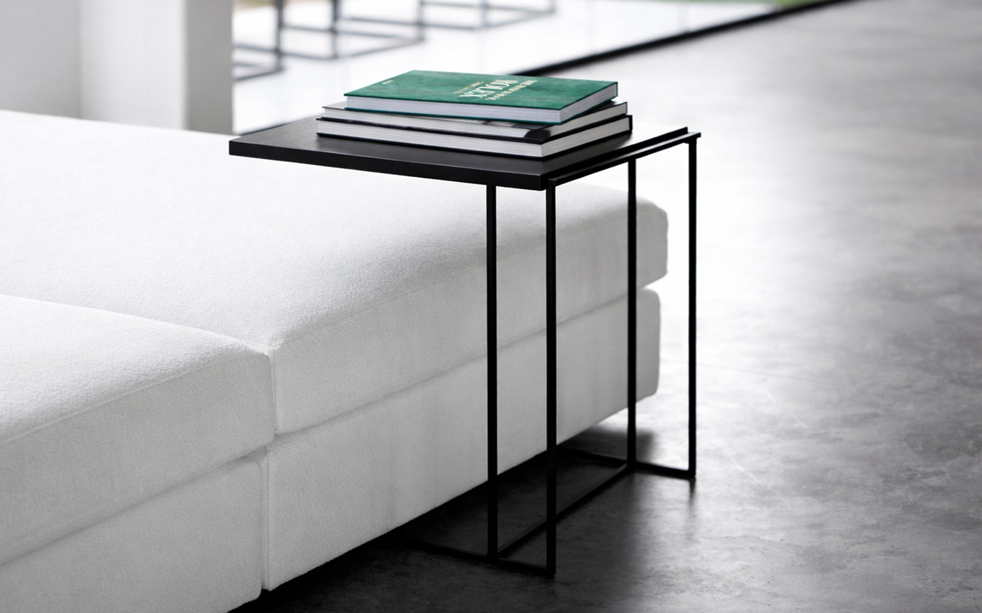 Der Butler Low von Passe Partout ist ein eleganter, minimalistischer Beistelltisch mit schlankem Metallgestell. Dank seines niedrigen, C-förmigen Designs lässt sich die Tischplatte mühelos über die Sofalehne schieben. Zeitlos, funktional und die perfekte Ergänzung für ein modernes Interieur.