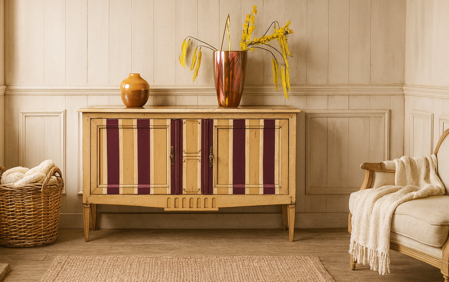 Schicke Sideboard, Kommode, kleiner Schrank mit Streifen. Erhältlich in mehreren Größen und Farbkombinationen (auch einfarbig)