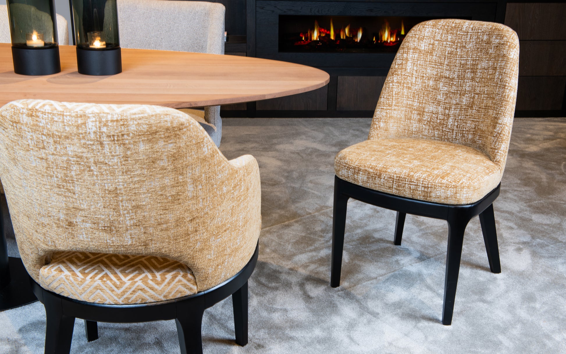 Entdecken Sie unsere wunderschöne Kollektion zeitloser Esszimmerstühle, fachmännisch aus hochwertigen Stoffen gefertigt. Diese Stühle sind die perfekte Ergänzung sowohl für klassische als auch moderne Innenräume, bei denen das Erscheinungsbild durch Ihre Wahl aus einer breiten Stoffauswahl bestimmt wird. Mit unseren Esszimmerstühlen genießen Sie nicht nur Komfort, sondern verleihen Ihrem Essbereich auch einen Hauch von Eleganz, unabhängig von Ihrer persönlichen Stilvorliebe.
