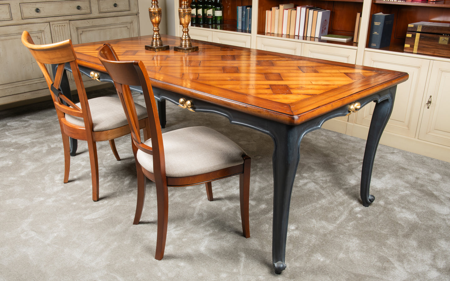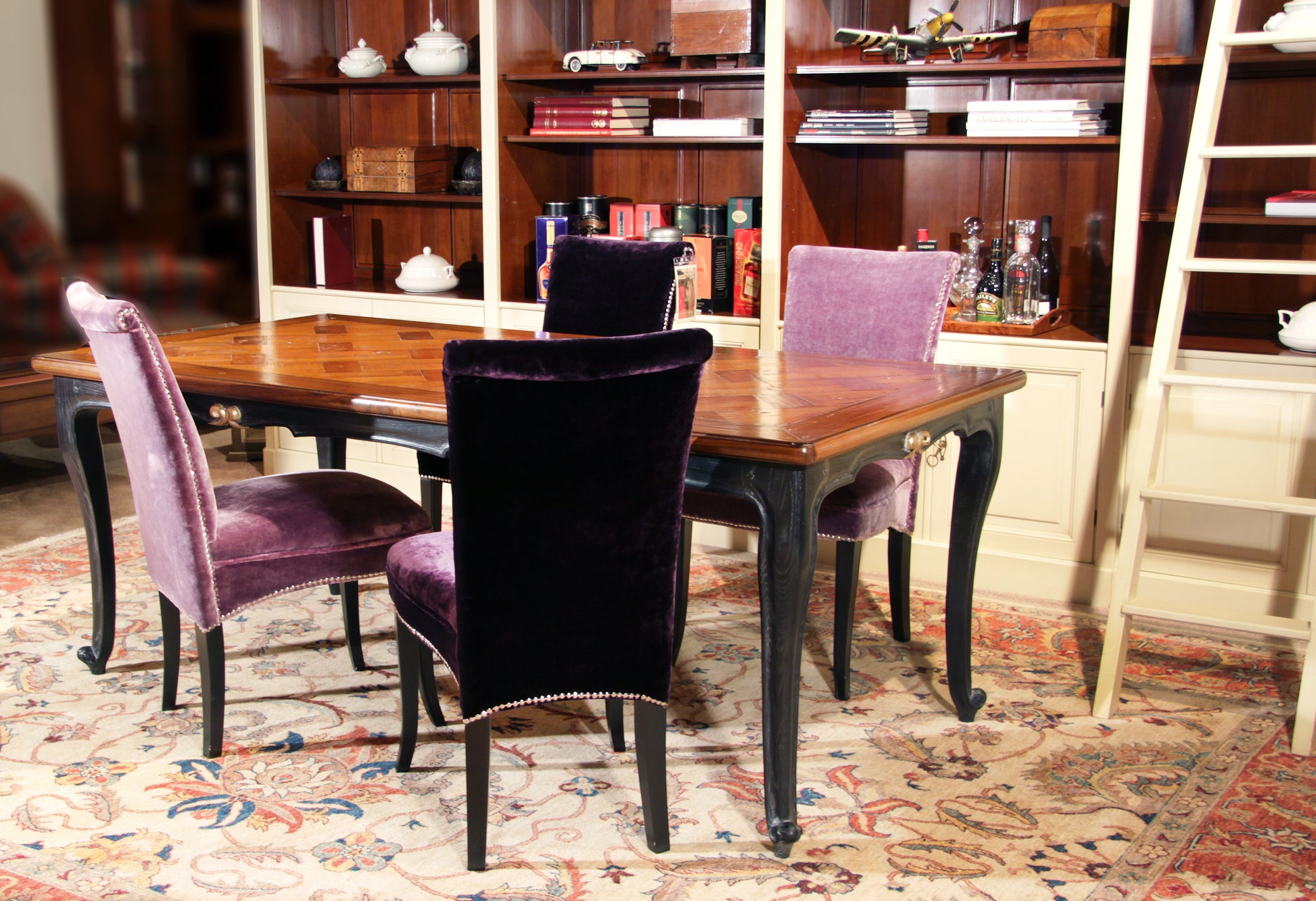 Esstisch aus Kirschholz mit walnussfarbener Platte und schwarzem Holzgestell aus unserer eigenen Livingstone-Kollektion.