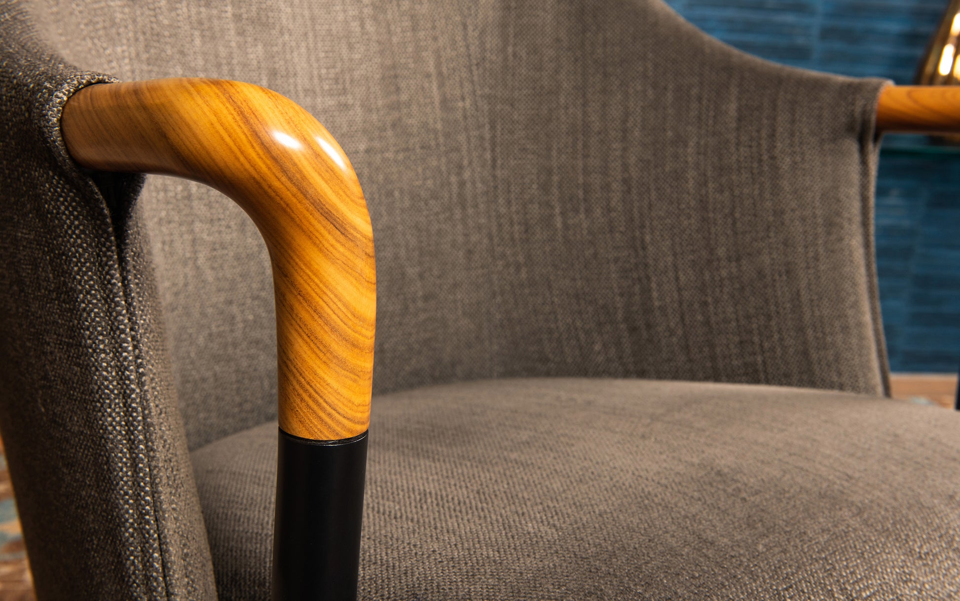 Die Sessel sind aus hochwertigen Materialien wie Holz, Leder und hochwertiger Polsterung gefertigt. Sie sind mit Liebe zum Detail und Ästhetik gestaltet und kombinieren klare Linien und organische Formen. Dadurch erhalten die Sessel ein elegantes Aussehen, das zu verschiedenen Einrichtungsstilen passt.