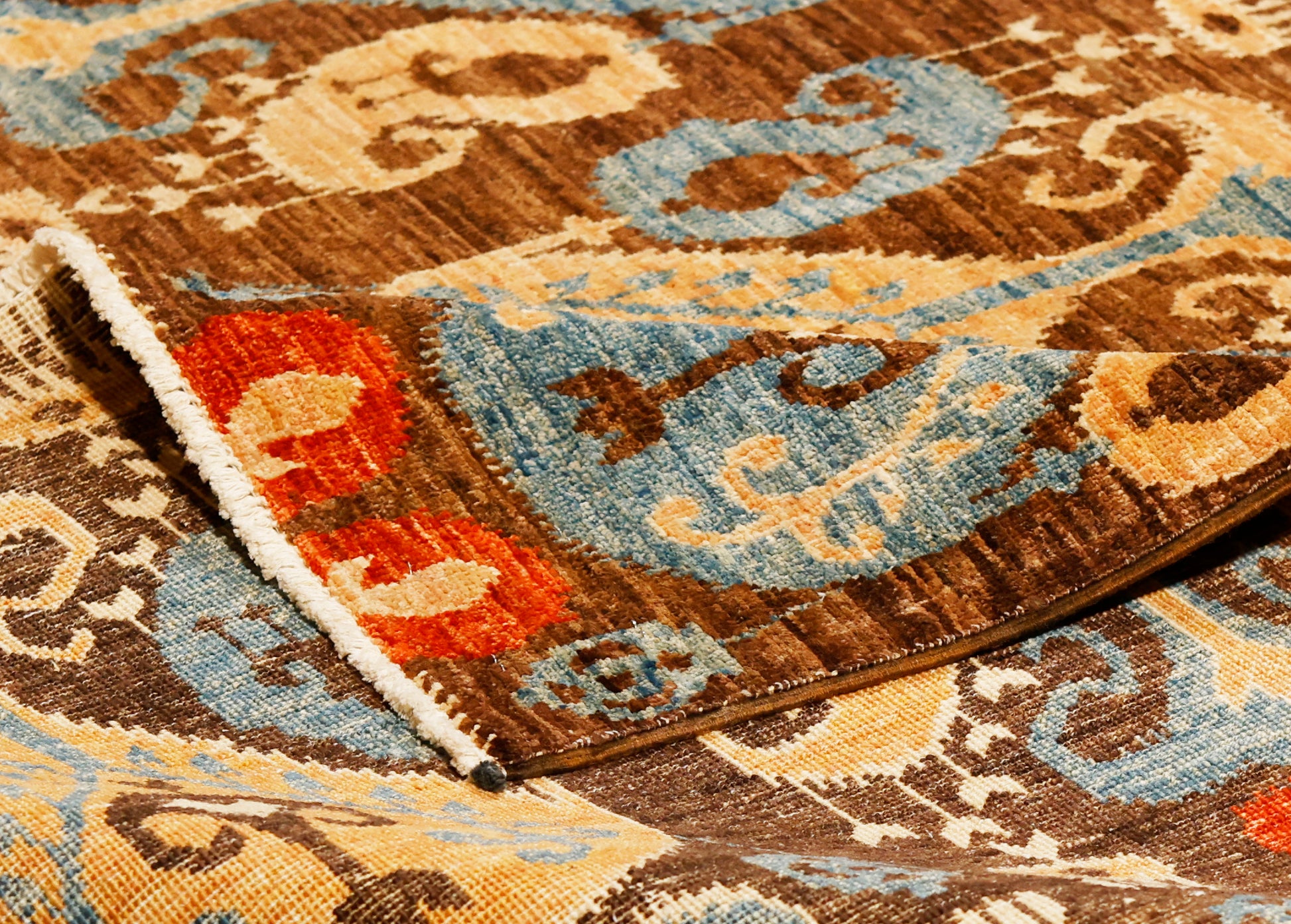 Unsere Teppiche werden mit Sorgfalt und handwerklichem Können von Hand gefertigt. Diese traditionelle Herstellungsmethode verleiht jedem Teppich seinen ganz eigenen Charakter und seine ganz eigenen Nuancen. Diese individuellen Merkmale sorgen dafür, dass jedes Stück ein authentisches Kunstwerk ist, das es von der Massenproduktion abhebt und Ihrem Raum eine persönliche Note verleiht.