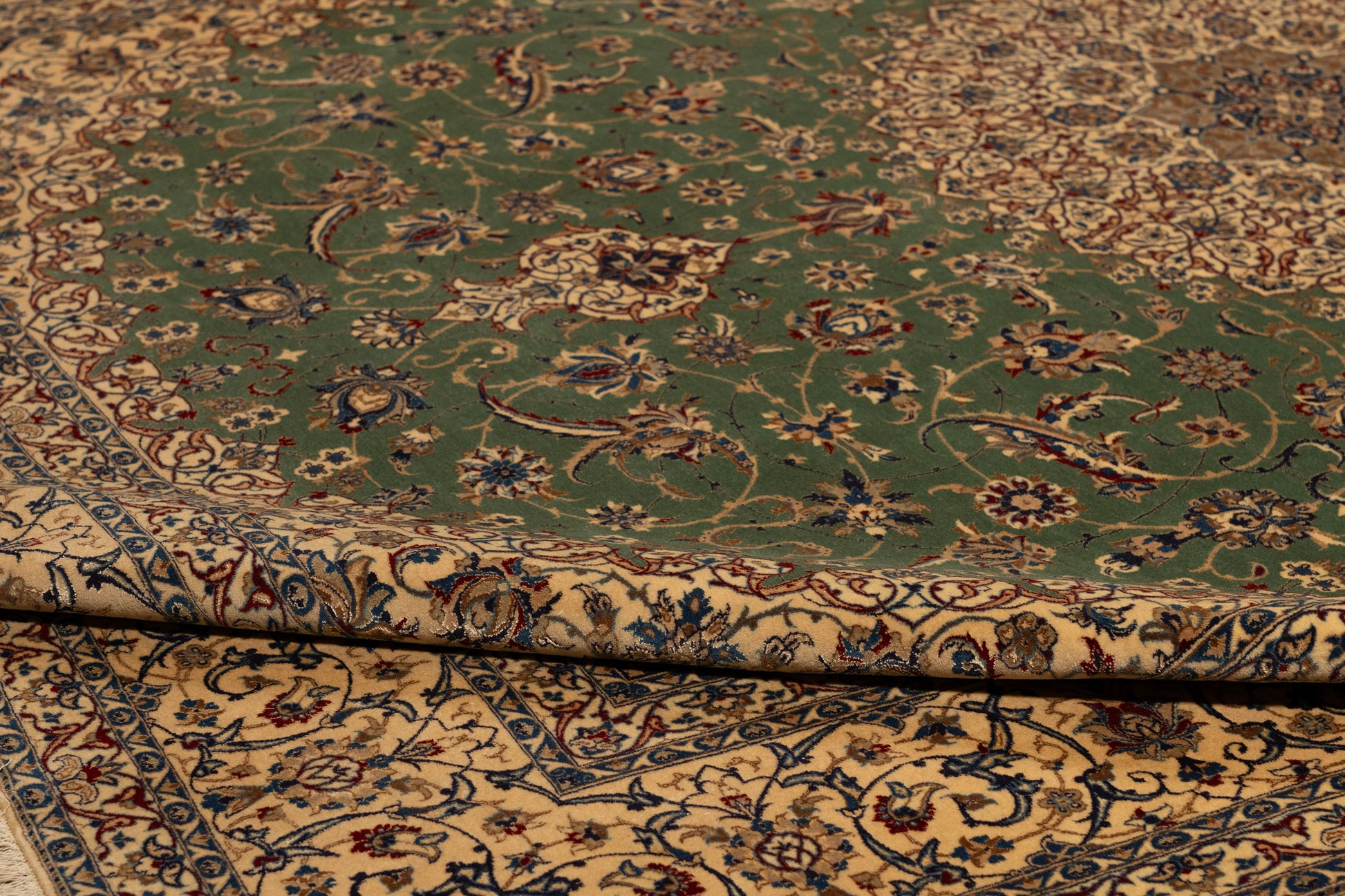 Unsere Teppiche werden mit Sorgfalt und handwerklichem Können von Hand gefertigt. Diese traditionelle Herstellungsmethode verleiht jedem Teppich seinen ganz eigenen Charakter und seine ganz eigenen Nuancen. Diese individuellen Merkmale sorgen dafür, dass jedes Stück ein authentisches Kunstwerk ist, das es von der Massenproduktion abhebt und Ihrem Raum eine persönliche Note verleiht.