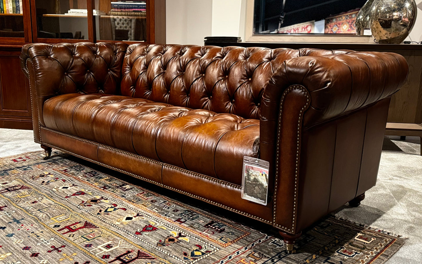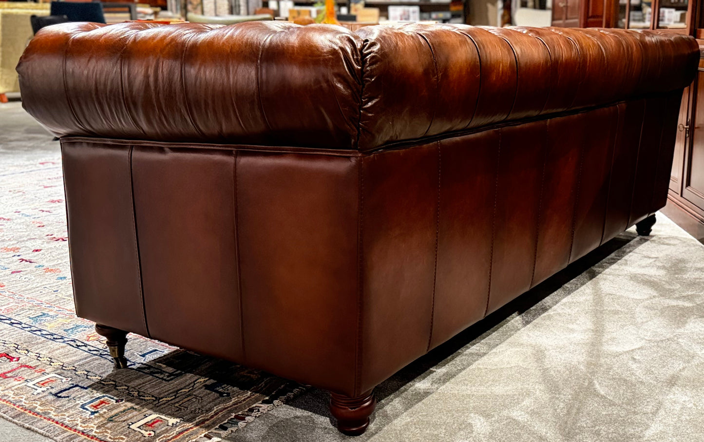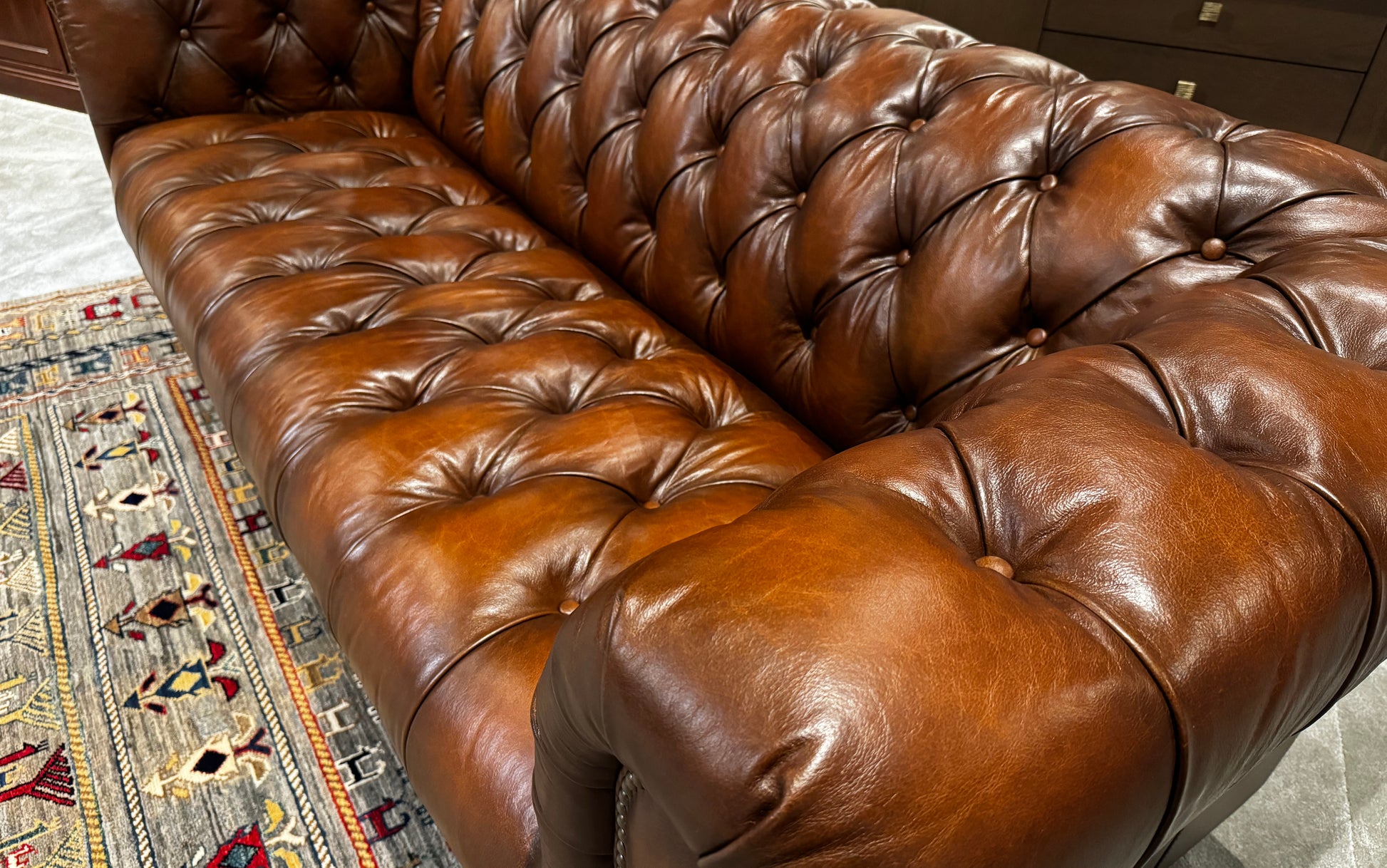 Dieser zeitlose Klassiker vereint die besten traditionellen Merkmale des englischen Chesterfields und wurde gleichzeitig sorgfältig an das moderne Wohnen angepasst. Genießen Sie erstklassigen Komfort, während Sie auf einem wunderschön detaillierten, handgenähten Sitz entspannen. Gepolsterte, gerollte Armlehnen sorgen für üppigen Halt und ein unvergessliches Sitzgefühl. Abgerundet wird diese Kollektion durch handgedrehte Hartholzbeine und optionale Vorderräder.