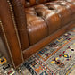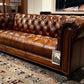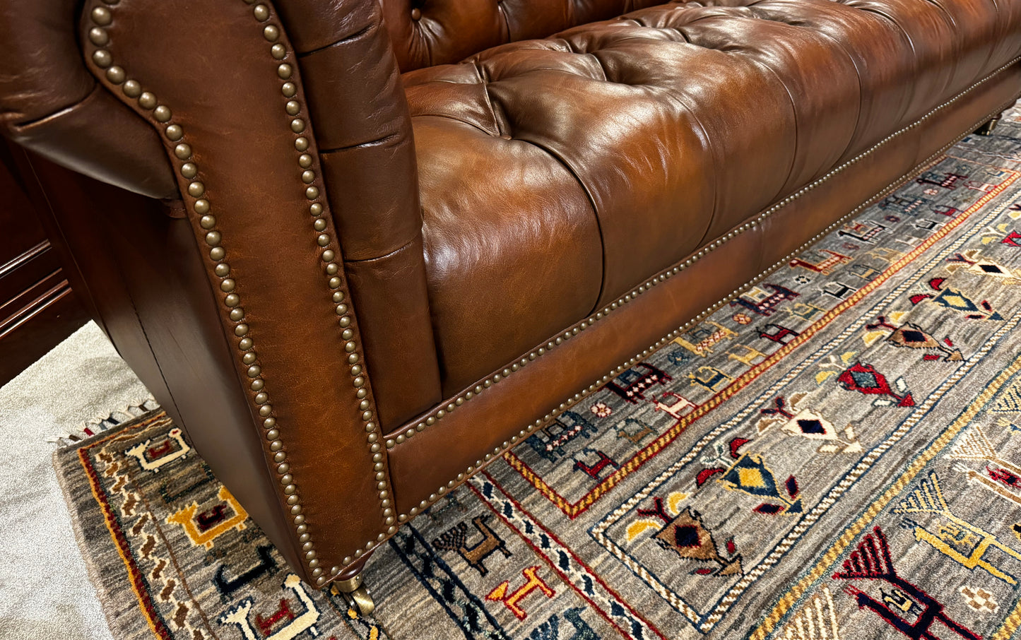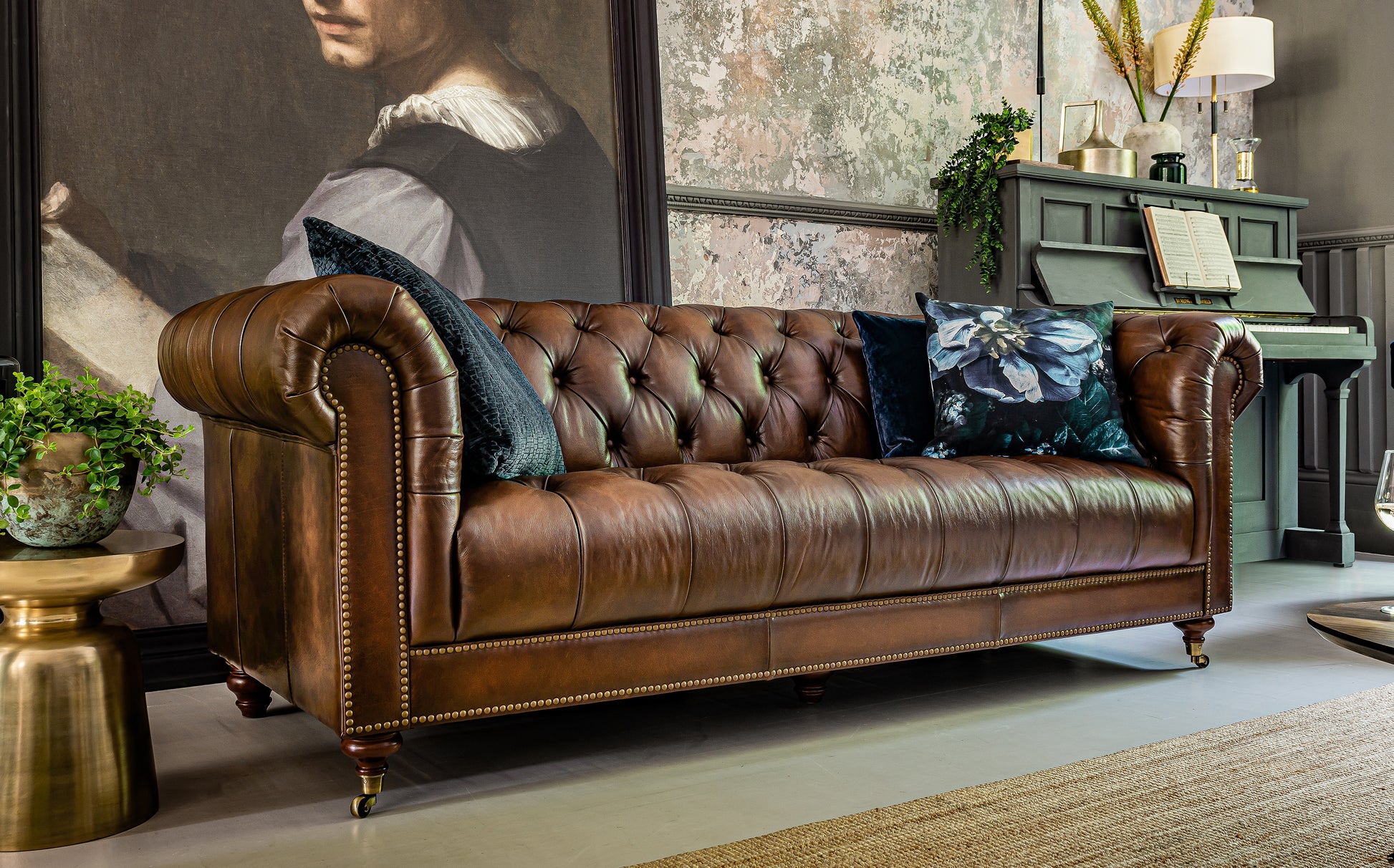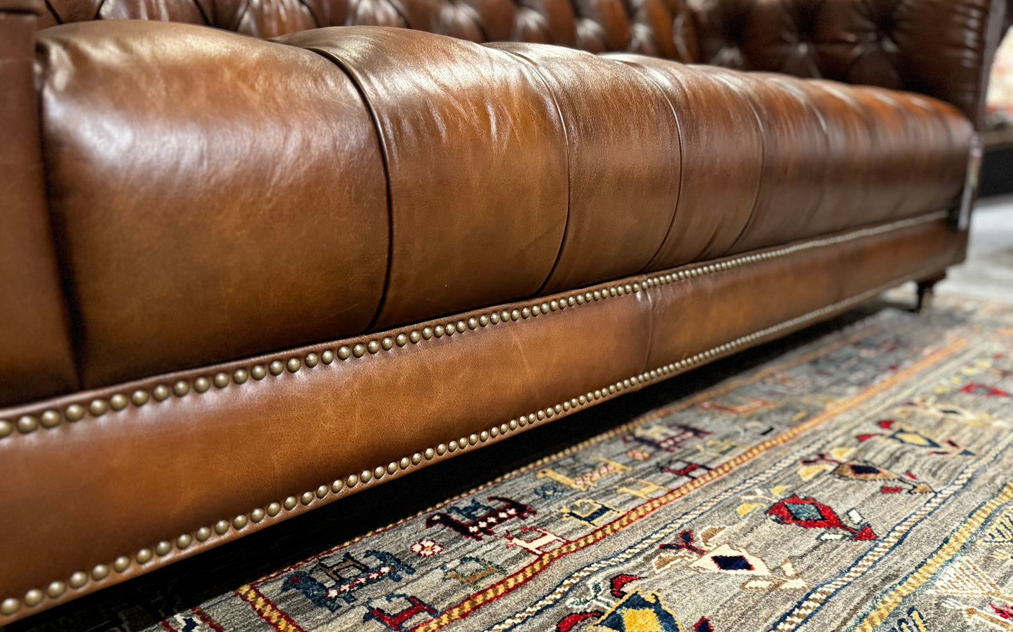Dieser zeitlose Klassiker vereint die besten traditionellen Merkmale des englischen Chesterfields und wurde gleichzeitig sorgfältig an das moderne Wohnen angepasst. Genießen Sie erstklassigen Komfort, während Sie auf einem wunderschön detaillierten, handgenähten Sitz entspannen. Gepolsterte, gerollte Armlehnen sorgen für üppigen Halt und ein unvergessliches Sitzgefühl. Abgerundet wird diese Kollektion durch handgedrehte Hartholzbeine und optionale Vorderräder.
