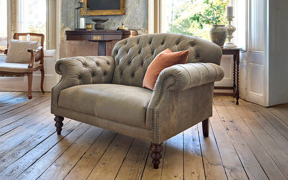 The Arbroath English Snuggler exudes timeless elegance and refined craftsmanship. With its generous shape, deeply tufted back, and graceful rounded armrests, this sofa is a classic statement piece that effortlessly adds warmth and character to any interior.