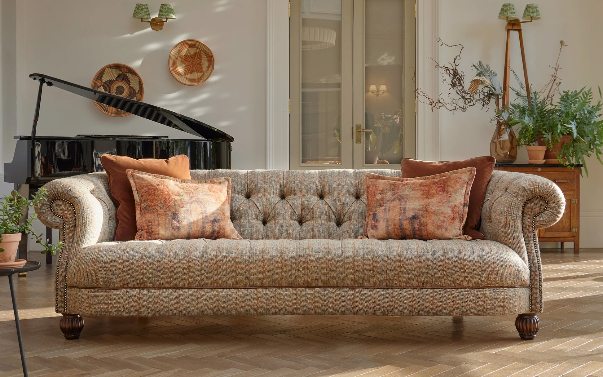 De Caledonian bank straalt klassieke Engelse charme en comfort uit. Met zijn diepe zit, gecapitonneerde rug en karakteristieke rolarmen is deze bank een tijdloze blikvanger. De rijke stoffering en ambachtelijke afwerking maken de Caledonian perfect voor een warm, stijlvol interieur.