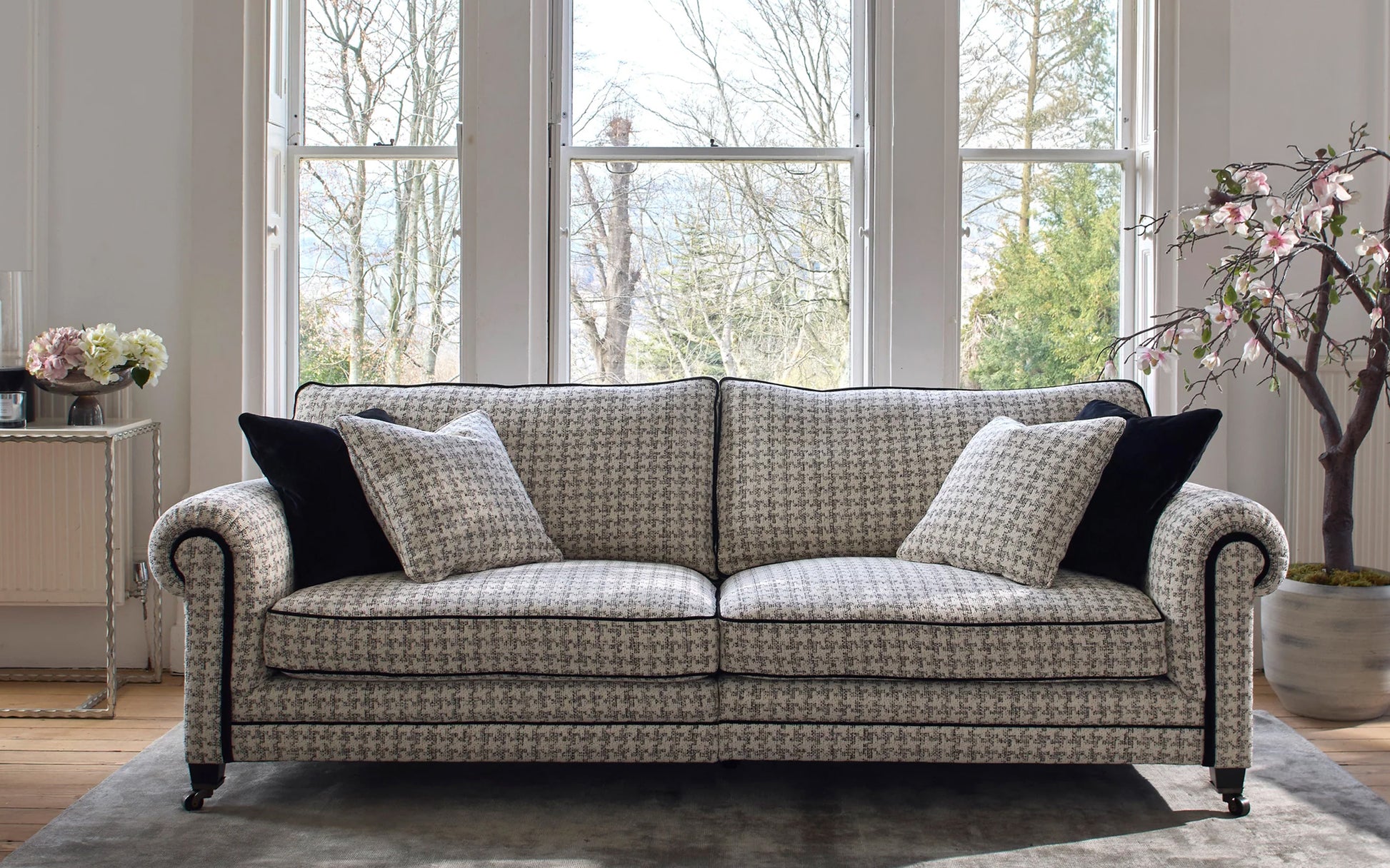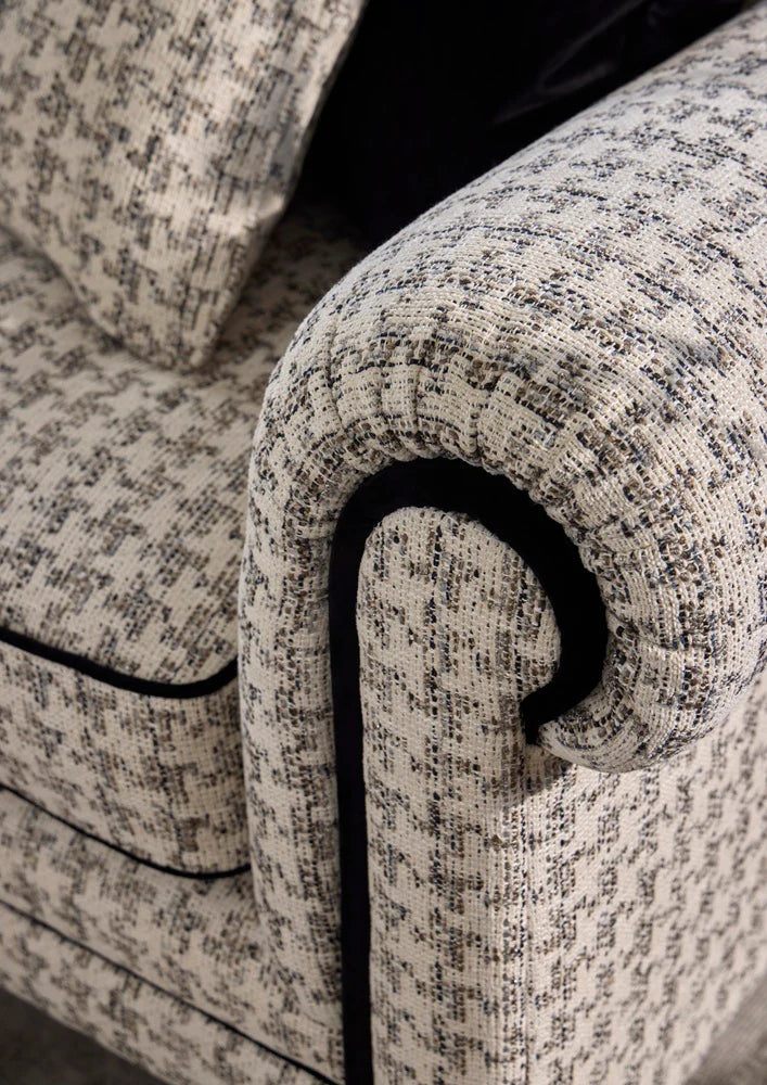 Deze Engelse bank van Tetrad combineert tijdloze elegantie met hoogwaardig vakmanschap. De klassieke vormen, afgeronde armleuningen en verfijnde biezen geven de bank een authentiek Britse uitstraling. De comfortabele zit- en rugkussens zorgen voor een aangenaam zitcomfort, terwijl de karaktervolle stof en stijlvolle pootjes met wieltjes het geheel een luxe en warme uitstraling geven. Een echte eyecatcher voor zowel klassieke als modern-landelijke interieurs.