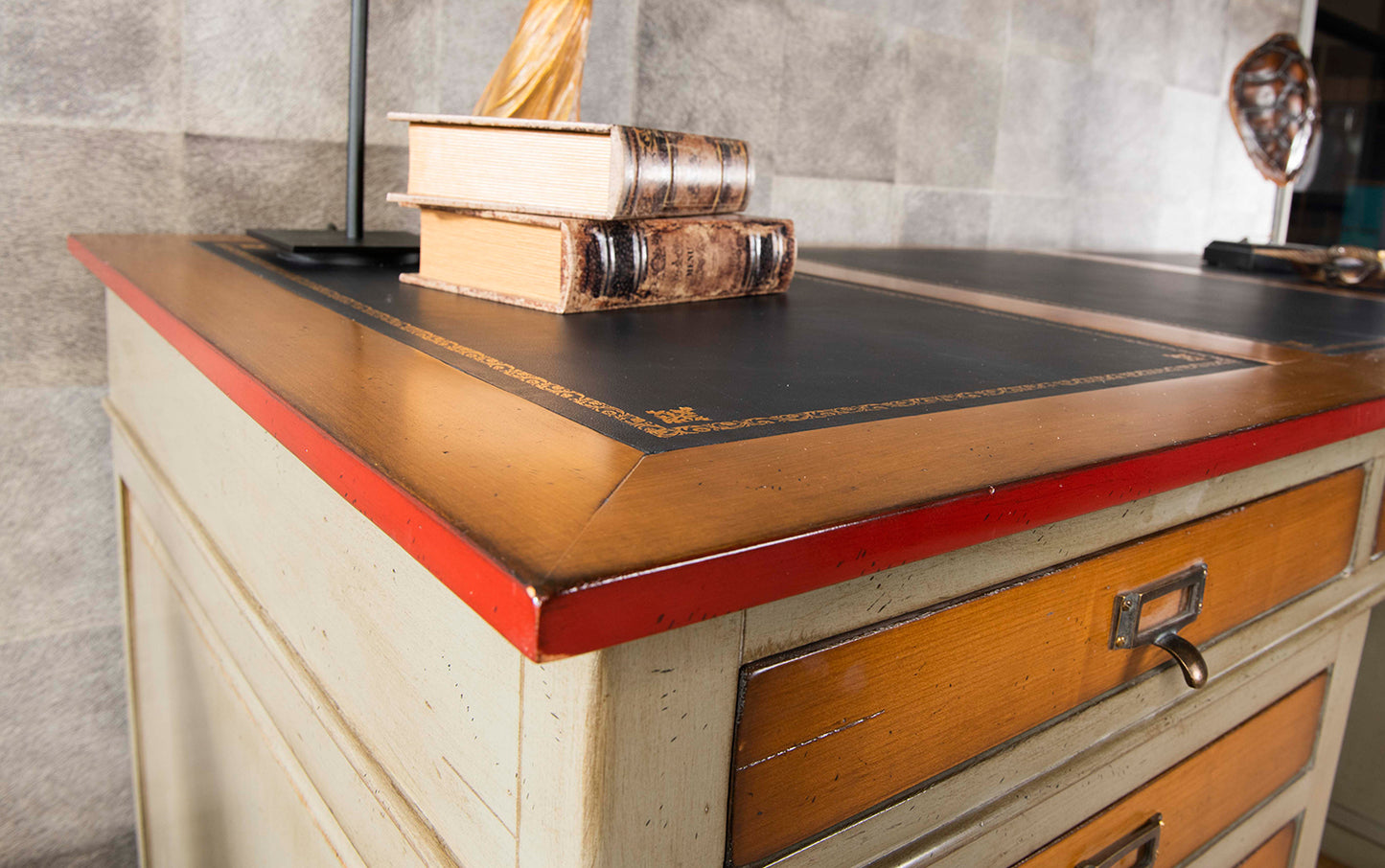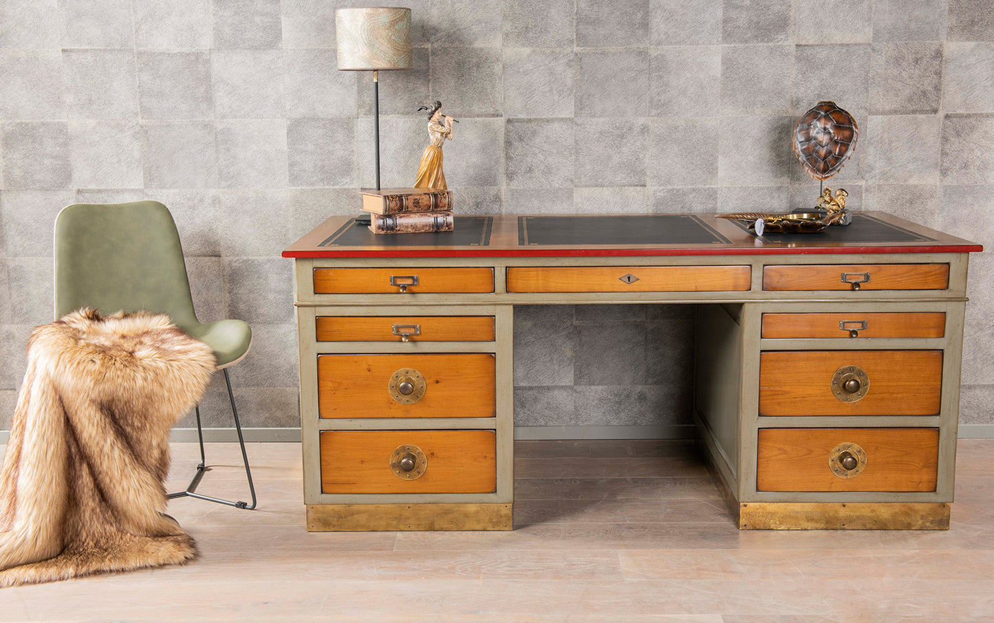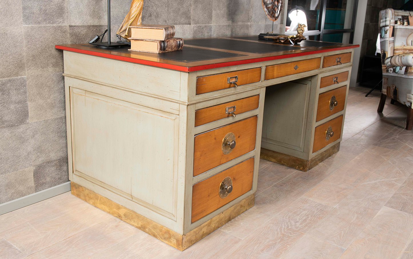 This impressive desk, inspired by the American style, enjoyed great popularity on the East Coast of the United States at the end of the 19th century.