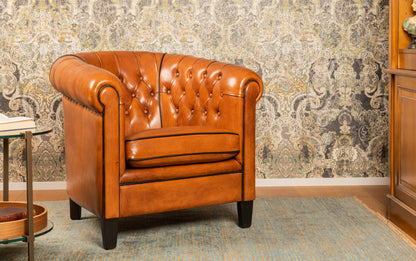 The beautiful Canterbury Sheepskin Leather Armchair has been handcrafted with great care and craftsmanship, made from the finest Australian sheepskin leather. If you are looking for a matching sofa, this armchair is also available in a sofa version. The sheep leather furniture has a sturdy beechwood hull and is covered with no less than 6 layers of internal upholstery. They are then upholstered with wet sheep leather, creating a piece of furniture without folds and with a unique look. To finish it off, each armchair or sofa is patinated and colored by hand until it has the perfect look.