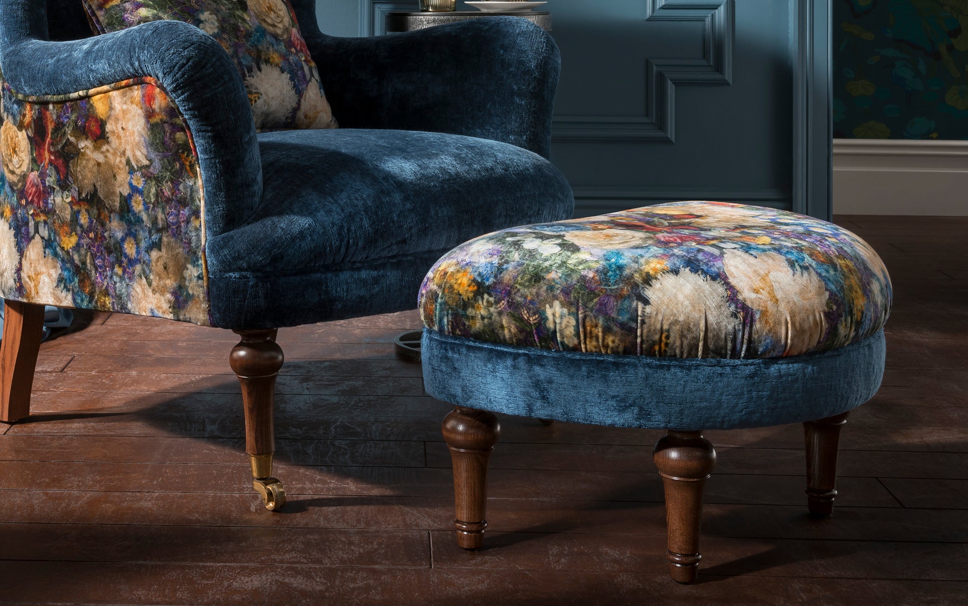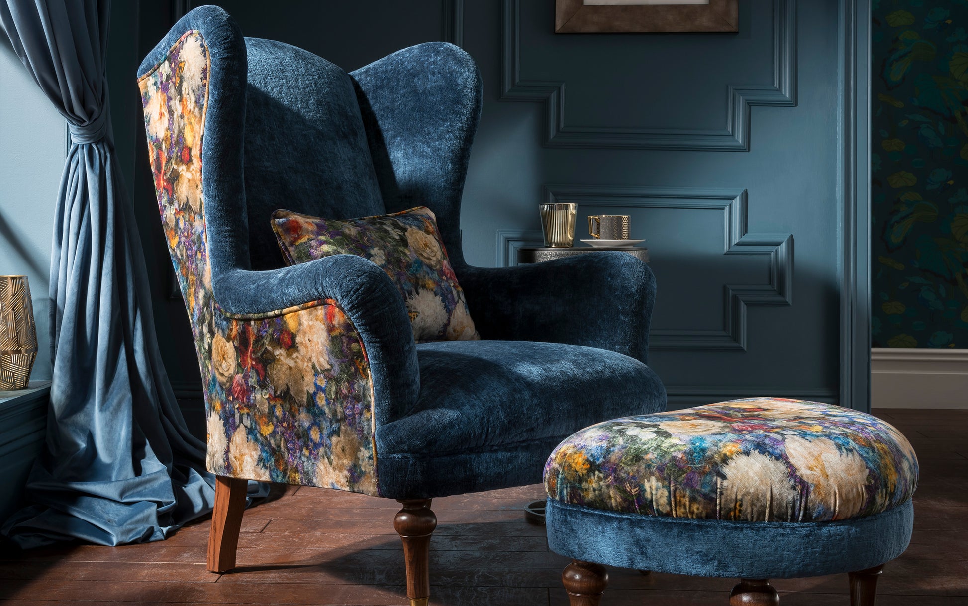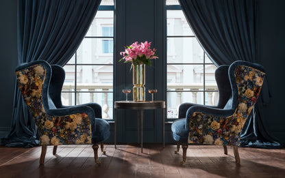 Handcrafted and hand finished, the chair features printed fabrics and Italian velvet to create a glamorous modern classic.