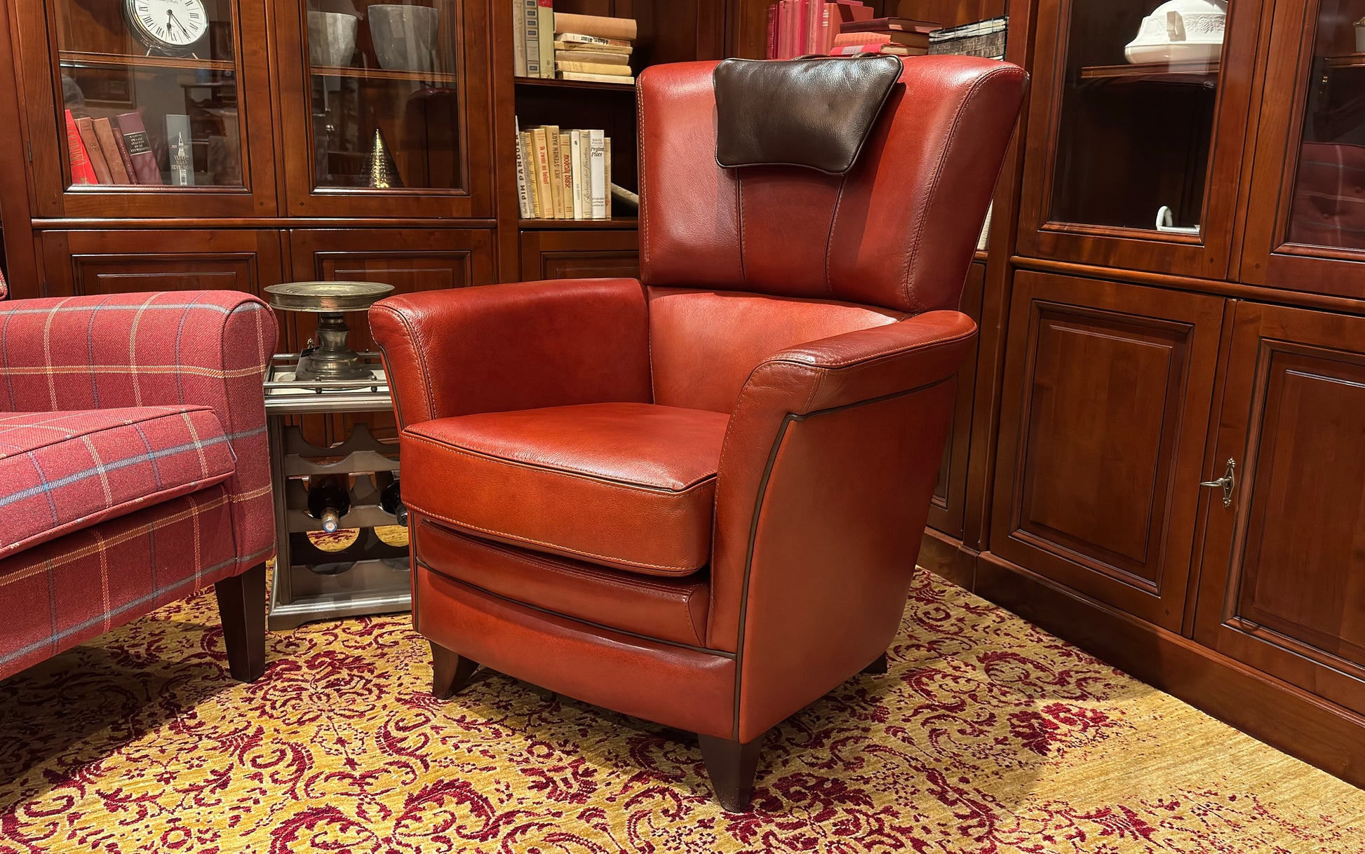 The Morris armchair combines timeless elegance with unparalleled comfort. With its warm red leather upholstery and refined finish, it adds a touch of luxury to any room. Its soft shapes and classic look make it the ideal place to relax, for example in a stylish reading corner. Surrounded by rich wooden accents and warm tones, this armchair comes into its own and invites you to sink into a good book or a moment of peace. A perfect balance between traditional craftsmanship and contemporary charm.