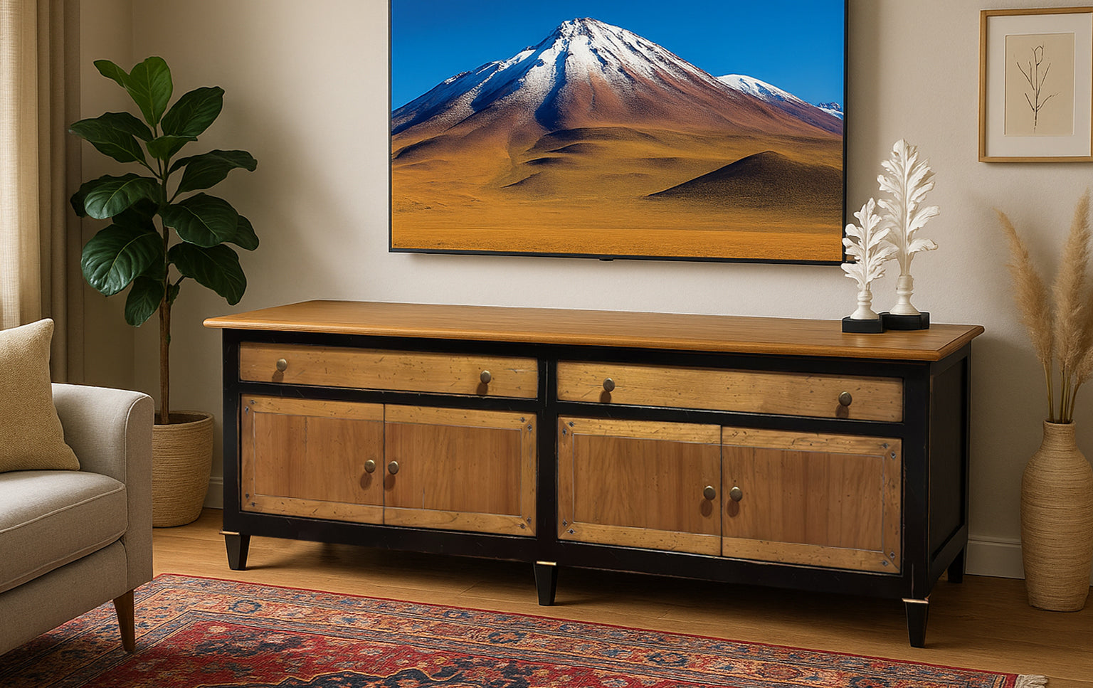The "Directe Ligne" TV cabinet offers a wonderful combination of style and functionality, inspired by the classic elegance of the Directoire style. This piece of furniture is designed to enhance your interior with its timeless charm and practical storage space.
