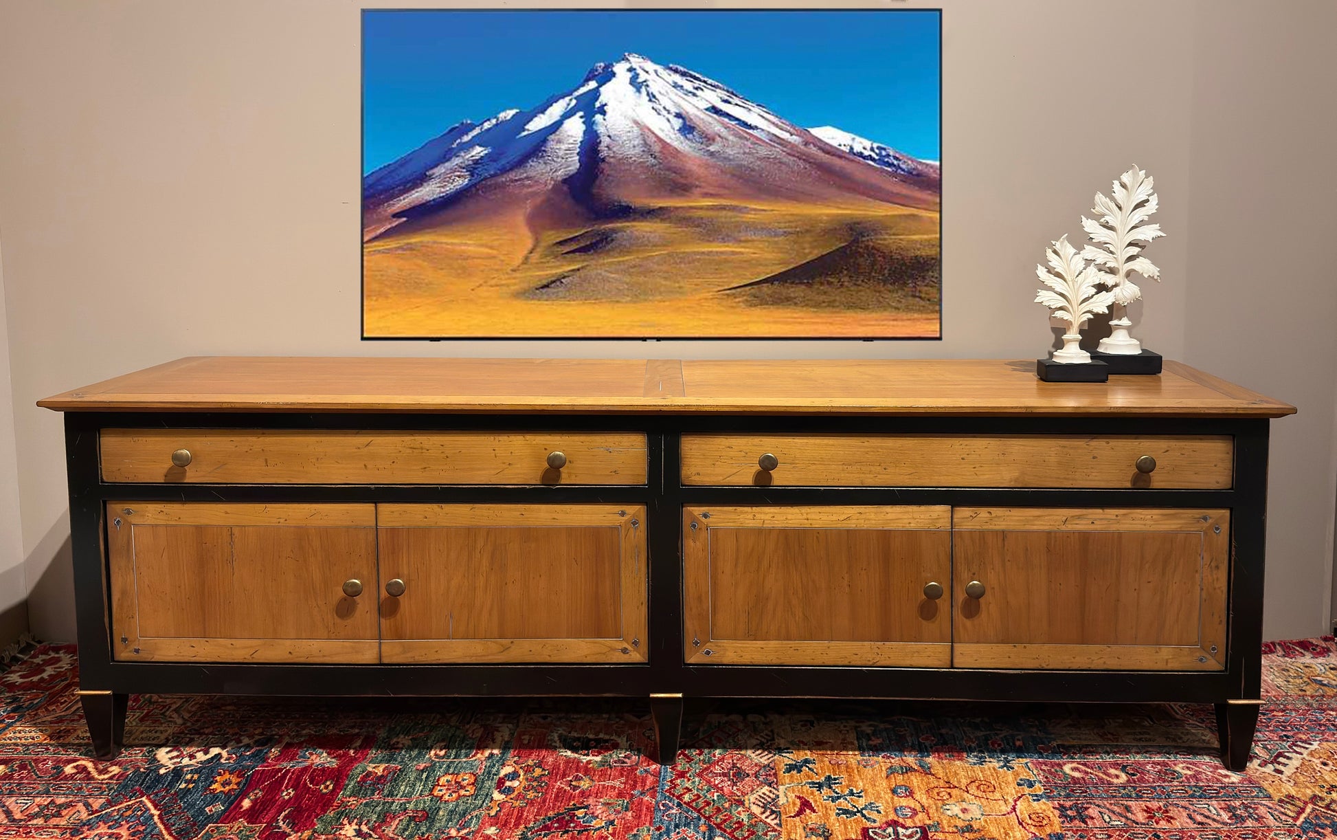 The "Directe Ligne" TV cabinet offers a wonderful combination of style and functionality, inspired by the classic elegance of the Directoire style. This piece of furniture is designed to enhance your interior with its timeless charm and practical storage space.
