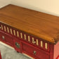 Beautiful cherry wood wall table in red with cherry color and golden details