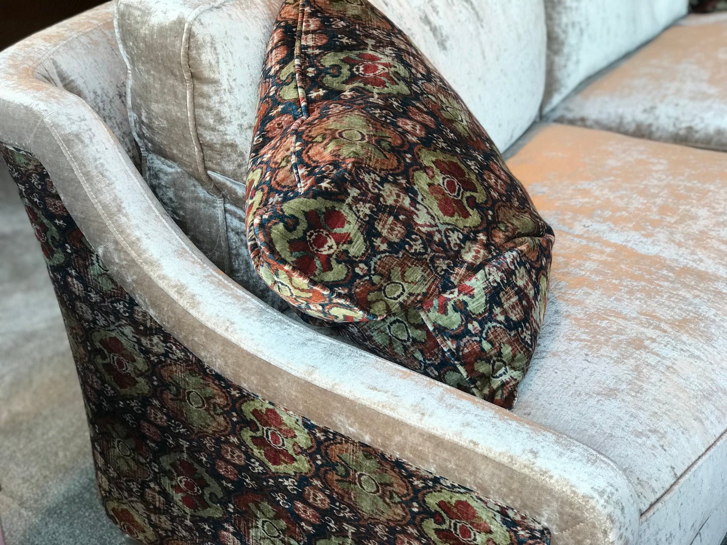 Ontdek een harmonieuze samensmelting van Art Deco en modern design van Spink & Edgar, resulterend in een bank die een vleugje continentale chic toevoegt aan uw interieur.