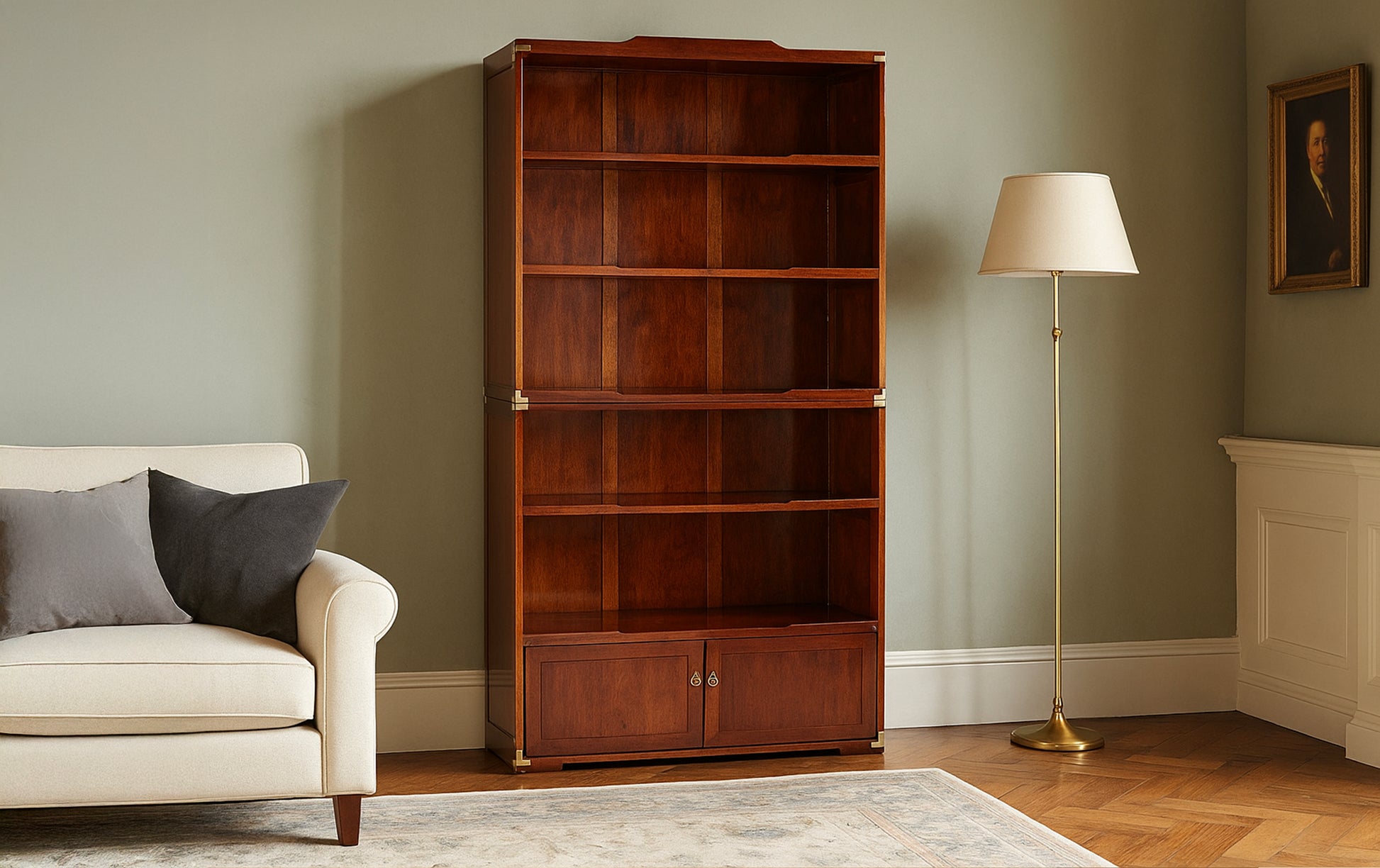 De Marco Polo biedt royale opbergruimte met meerdere open schappen voor boeken, kunstobjecten of decoratieve items, en afsluitbare deuren aan de onderzijde voor discreet opbergen van persoonlijke spullen. Dankzij zijn verfijnde afwerking en rijke houtnerf past deze boekenkast perfect in zowel een klassiek interieur als een eigentijdse woonruimte waar karakter en warmte gewenst zijn.