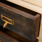 De handgepatineerde afwerking en het contrasterende houtwerk brengen warmte en karakter in elke ruimte.