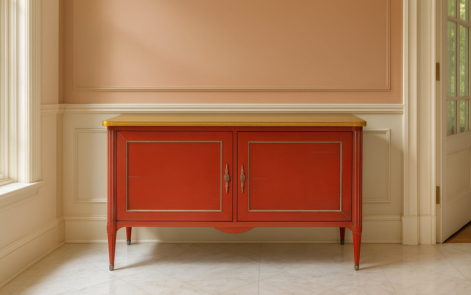 New Grange: Ermitage is een elegante meubelstijl met Franse flair en een vleugje Louis XVI-invloeden. Vernoemd naar het beroemde Hermitage-museum in Sint-Petersburg, Rusland, wordt de stijl gekenmerkt door verfijnd beslag op de poten en groeven voor textuur. De meubels lenen elementen van Louis XVI, zoals rechte lijnen en verfijnde ornamenten. Het kleurenpalet is geïnspireerd op de rijke tinten van de kunstschatten in Sint-Petersburg, met diepe roodtinten, blauwen, gouden en zachte pastelkleuren voor een weelderige uitstraling. De Ermitage-stijl voegt een tijdloze en luxe touch toe aan elk interieur.