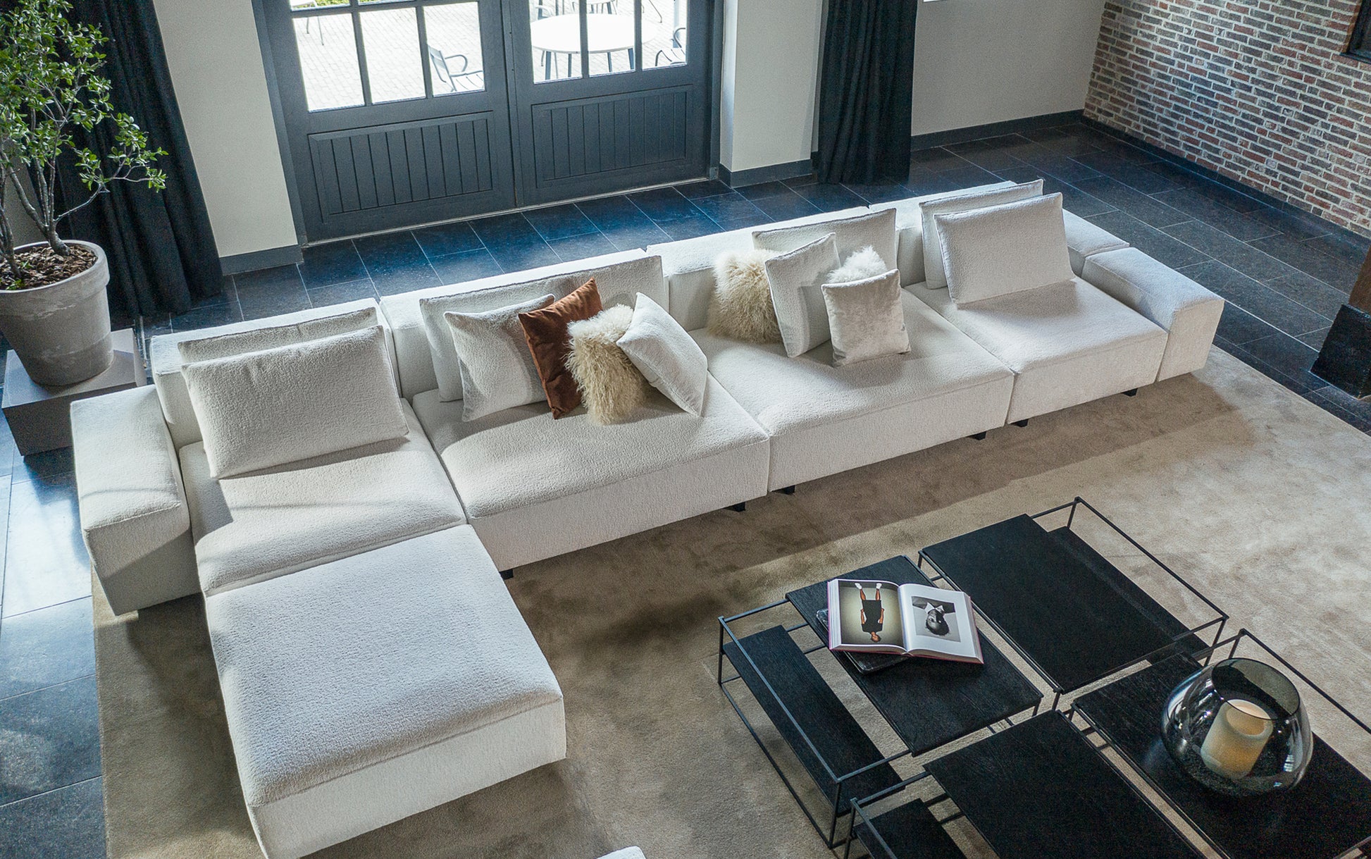 Ontdek de veelzijdige Blocco hoekbank van Passe Partout, een modulaire design die je de vrijheid geeft om jouw droombankl volledig naar eigen wens samen te stellen. Met drie verschillende formaten van zitelementen, rugelementen en armleuningen kan je eindeloos combineren en creëer je een unieke zitervaring. Daarnaast kan je naar eigen smaak losse rugkussens toevoegen. Met zijn blokvormige volumes straalt de Blocco sofa een strakke en minimalistische elegantie uit.