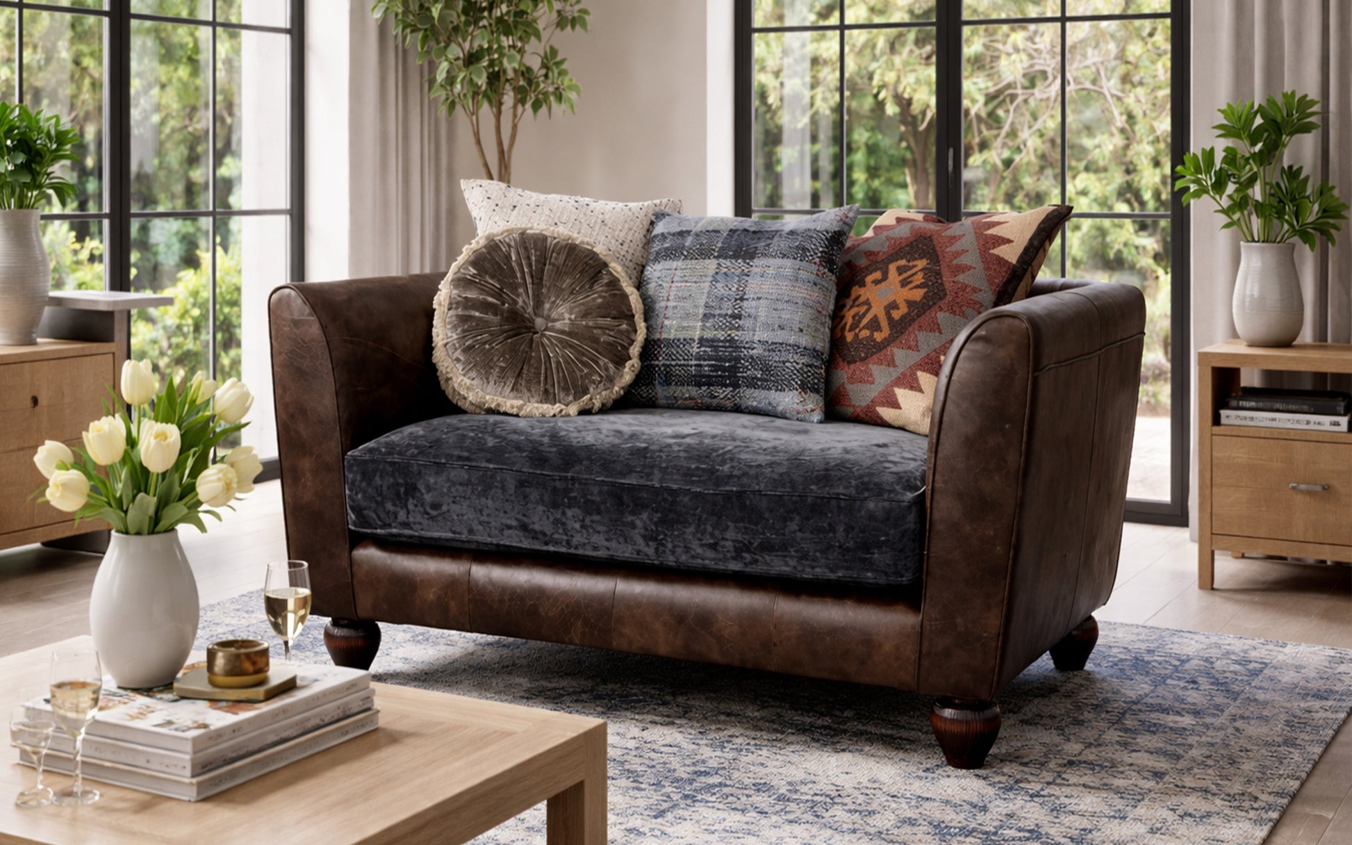 De volledig geveerde rugleuning en zitting met met veren gevulde zitkussens zorgen voor de ultieme ondersteuning en comfort, terwijl een eclectische mix van strooikussens zorgt voor individuele chic.