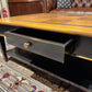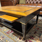 De "Directe Ligne" salontafel combineert elegantie en functionaliteit met een knipoog naar de Franse Directoire-stijl. Dit meesterlijk vervaardigde meubelstuk straalt een tijdloze charme uit door zijn harmonieuze mix van strakke lijnen, warme houttinten en donkere accenten.