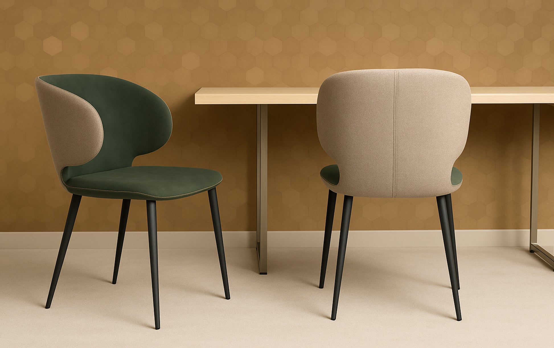 De Wrap-stoel heeft een stevig onderstel met vier poten van gelakt staal en een zitting bekleed met hoogwaardig leer, kunstleer of stof. Het moderne ontwerp biedt zowel elegantie als comfort, waardoor de stoel een perfecte toevoeging is aan eigentijdse eetkamers, kantoren of wachtruimtes.